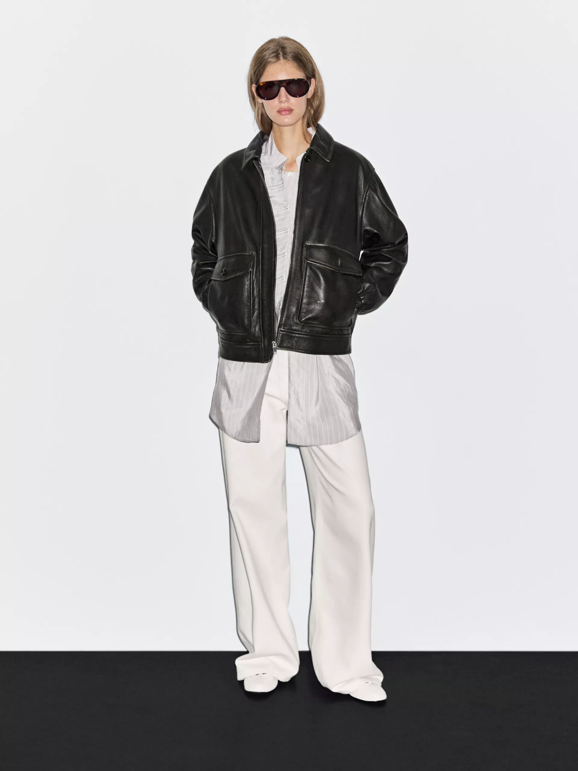 Massimo Dutti Jakna od nappa kože sa detaljem na kragni