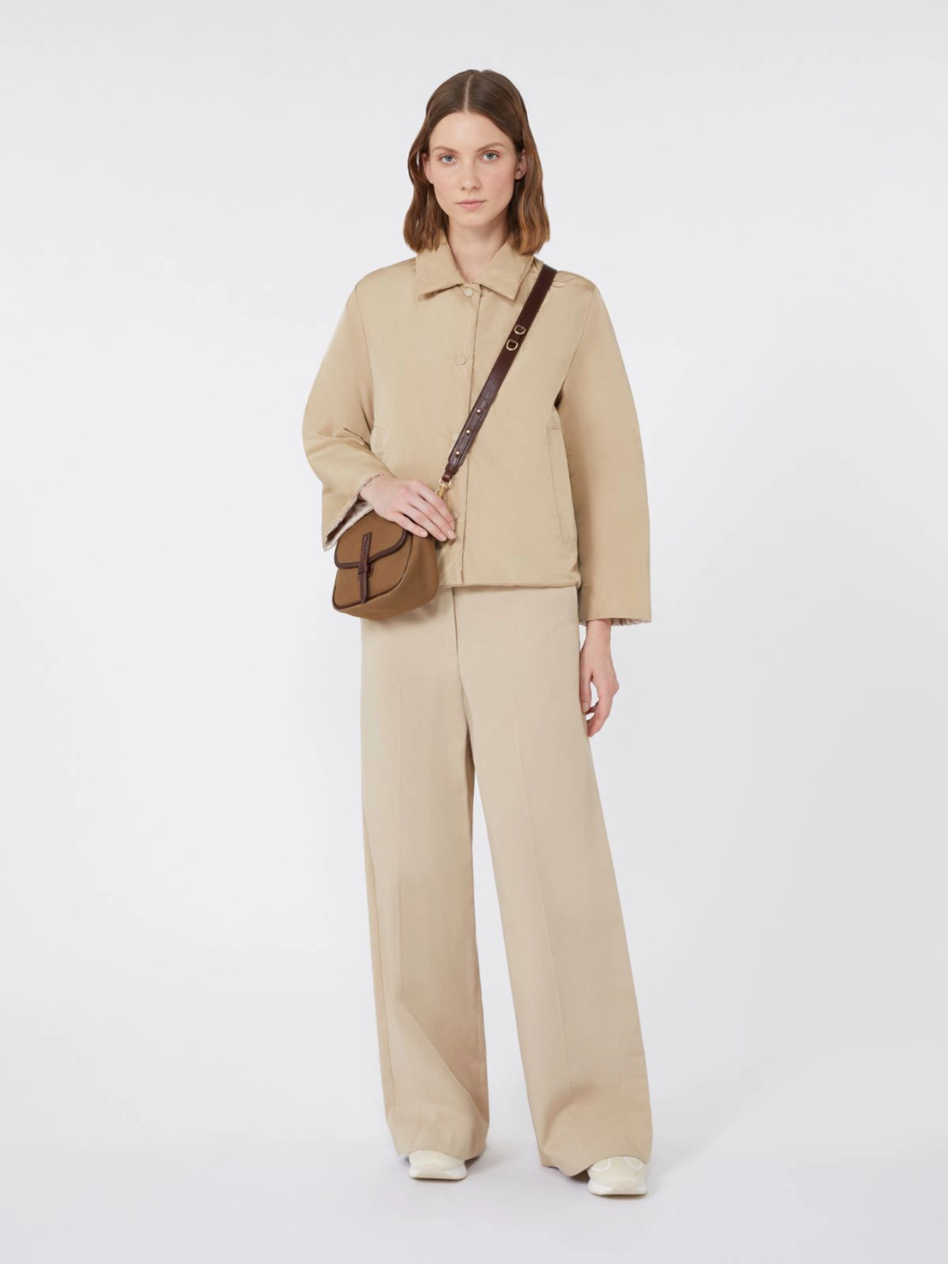 Ovaj tip jakne najbolje funkcioniše u casual-elegantnim kombinacijama. Zbog ravnog kroja i reverzibilnog dizajna lako se uklapa uz farmerke i kožne pantalone, ali i preko pletenih haljina. Špic kragna i širi rukavi daju joj šik notu, pa se odlično nosi i uz visoke čizme ili mokasine. Idealna je za dnevne kombinacije kada želite praktičnost i stil u jednom.