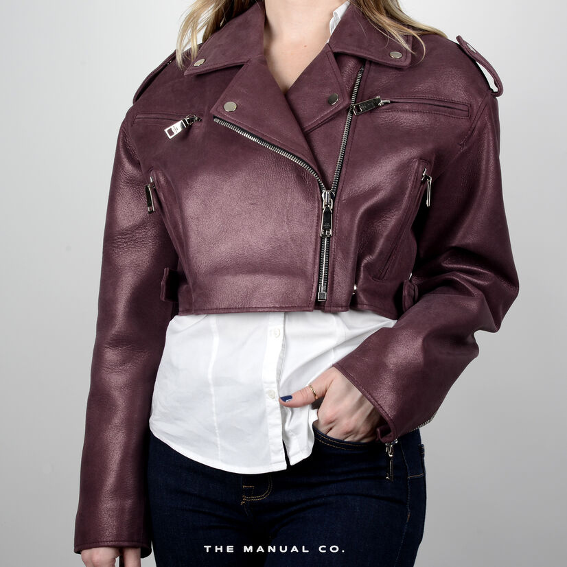 Ovaj komad spaja klasičnu formu i modernu boju. Kratka kožna jakna u burgundy nijansi podiže i najjednostavniju kombinaciju – od farmerki i majice do slip haljine. Uz čizme na štiklu postaje večernji komad, dok u paru sa patikama i pletivom naglašava ležernu, ali promišljenu estetiku. Burgundy ton daje toplinu i dozu sofisticiranosti, pa jakna može funkcionisati i kao akcenat uz neutralnu paletu ili kao dodatni sloj u ton-sur-ton kombinacijama sa crvenim, braon ili čak ružičastim detaljima. Uvek ostaje komad koji nosi stav i lako se uklapa u jesenji garderober.