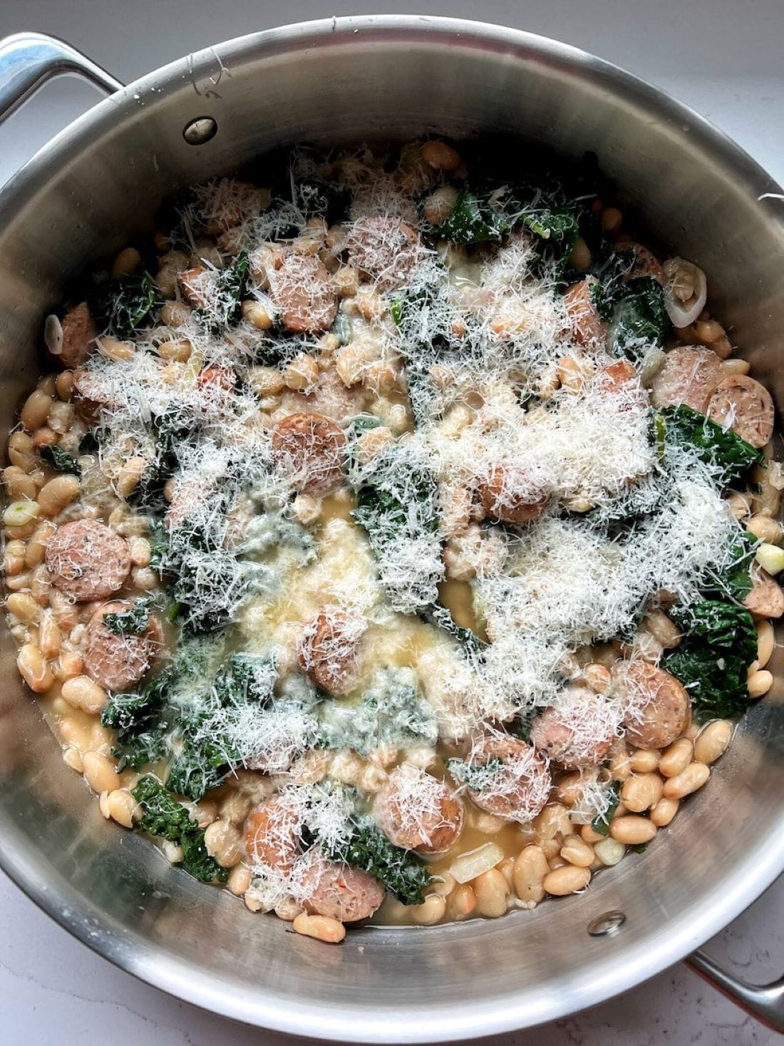 Kelj je svakako sezonska namirnica, a ovaj obrok ga prelepo kombinuje. Ukusan beli pasulj i kobasica čine ovo zdravom opcijom sa mnoštvom ukusa.