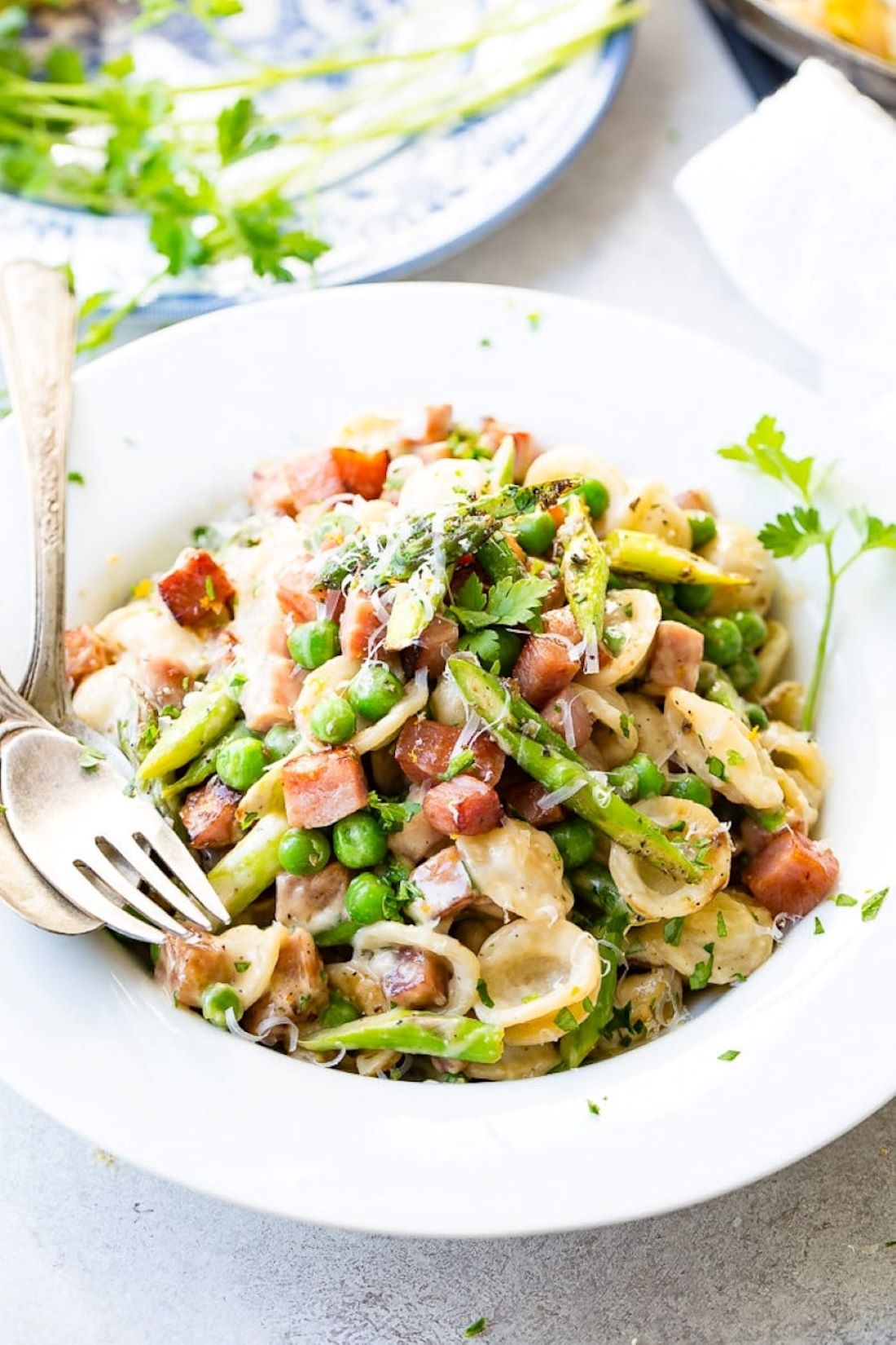 Prolećna pasta sa šunkom i šparglom u limunovom kremu