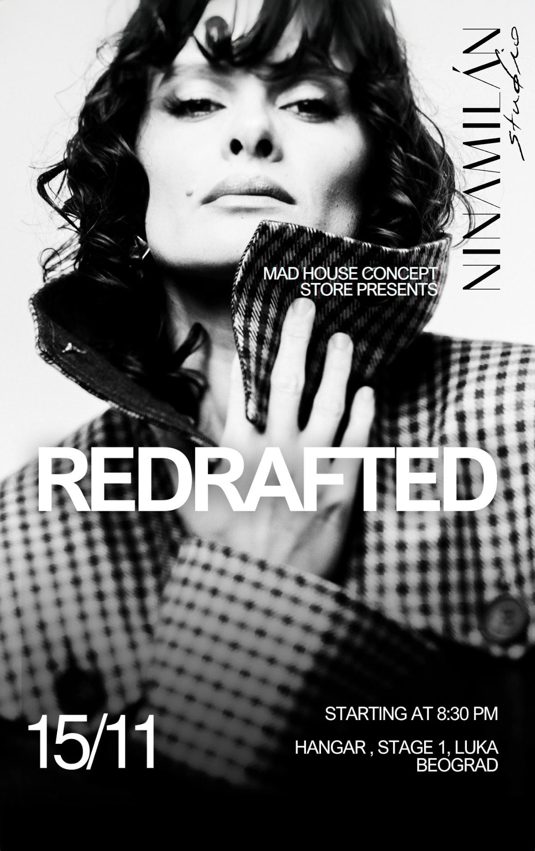 Predstavljanje kapsula kolekcije REDRAFTED by NINAMILÁN studio biće održano u subotu, 15. novembra 2025. godine u kultnom prostoru Hangara 1 u Luci Beograd, jednoj od najprepoznatljivijih lokacija za modne događaje u Srbiji.
