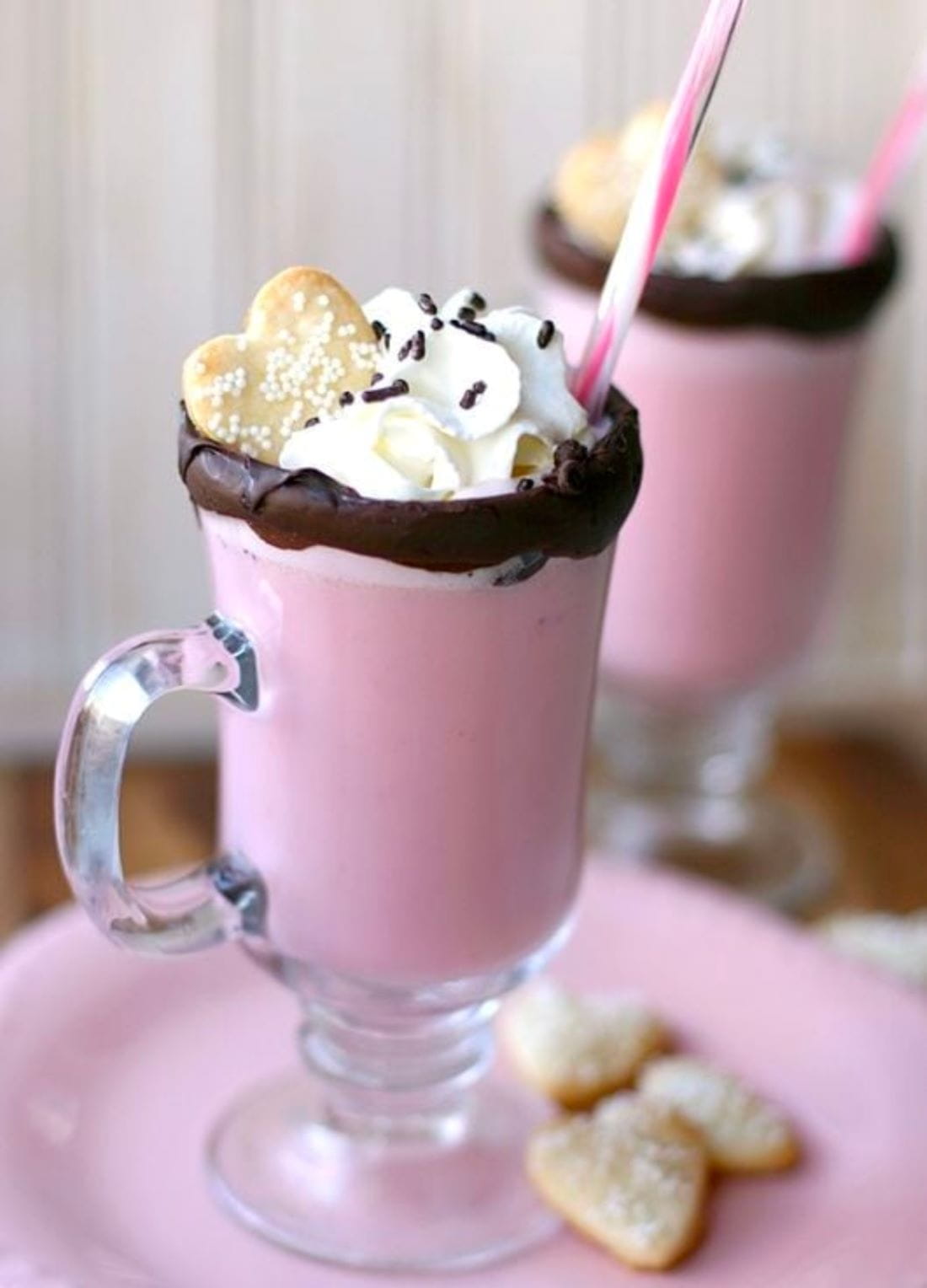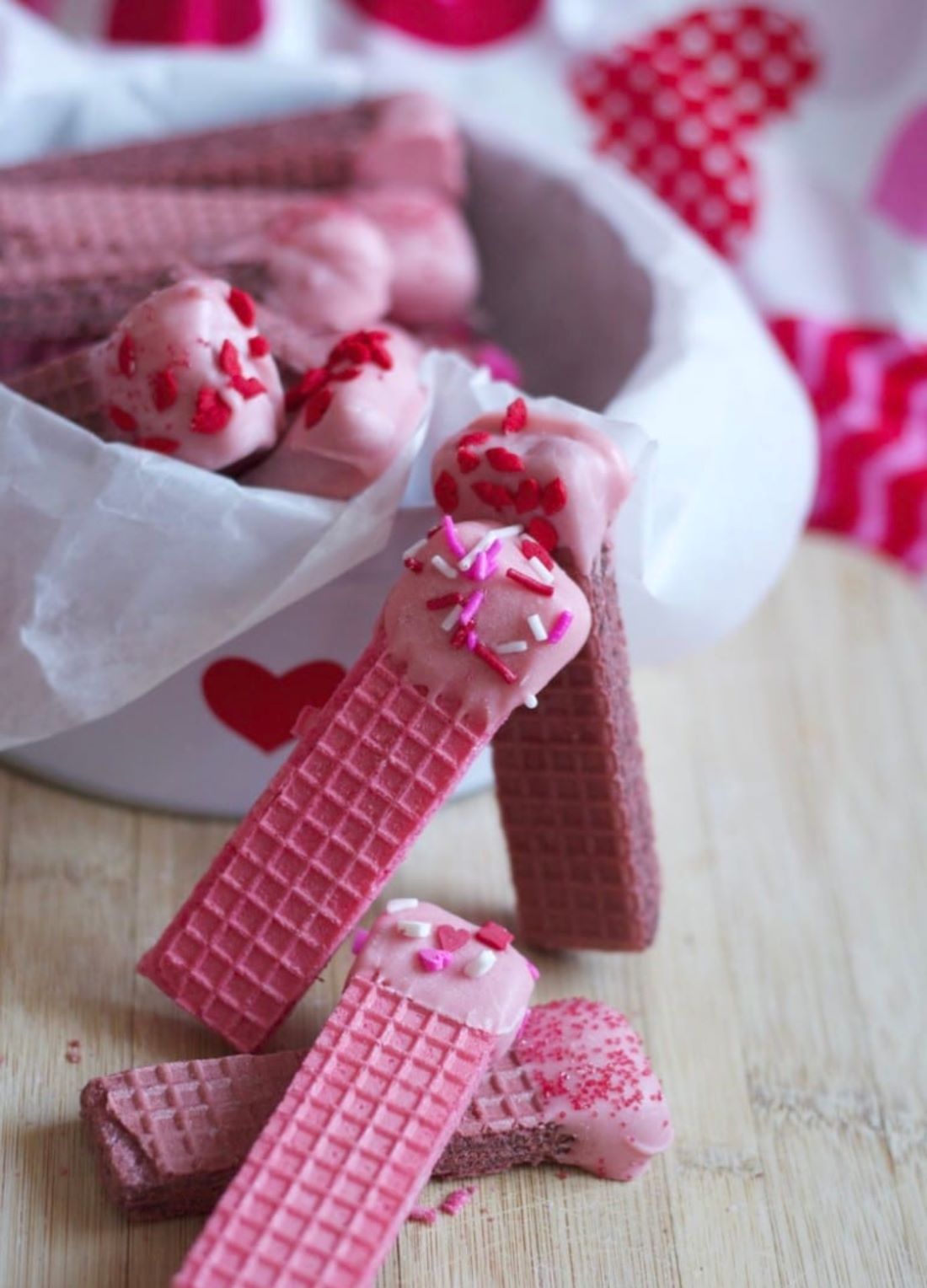 Šta bi moglo bolje da ide uz šolju vrućeg kakaa na Dan zaljubljenih nego ružičasti vafl kolačići koje možete umakati?! Ovi kolačići imaju i dodatni dodir domaće čokolade i mrvica!