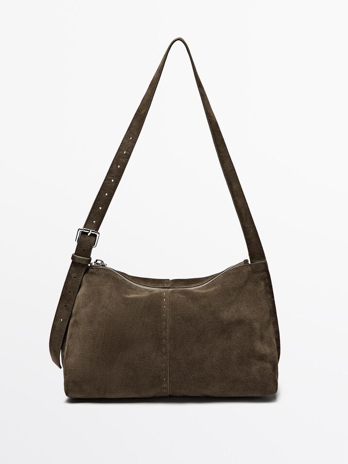 Massimo Dutti Torba za nošenje preko tela i ramena od brušene kože